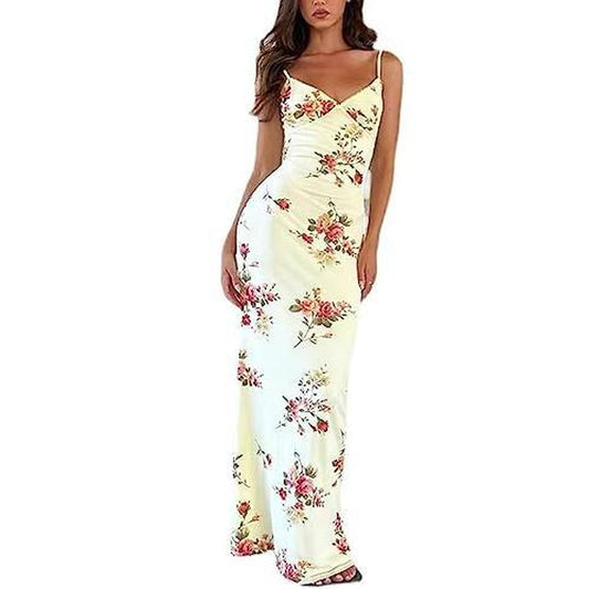Womens Dress Dresses for Women Midi Dress Maxi Dress Mini Dress Women Vintage Spaghetti Strap Maxi Dress Sexy Low Cut Backless Floral Satin Slip Long Dress Y2K Cami Bodycon Dresses