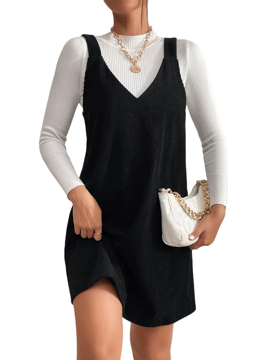 COZYEASE Womens Pinafore Corduroy Overall V Neck Sleeveless Mini Dress Without Top Black XXXXL