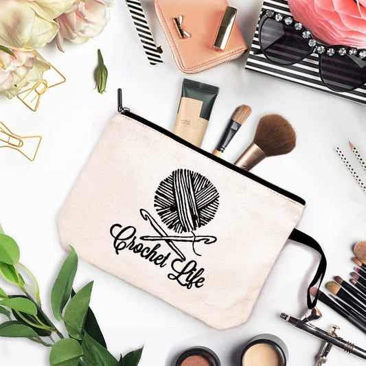 Crochet Life Funny Cosmetic Bag, for Travel Toiletry Zipper Storage Pouch Makeup Bag, Crochet Knit Lover Gifts, Birthday Present for Crochet Friends, Knitting Theme Cosmetic Bag, Yarn Lovers Gifts