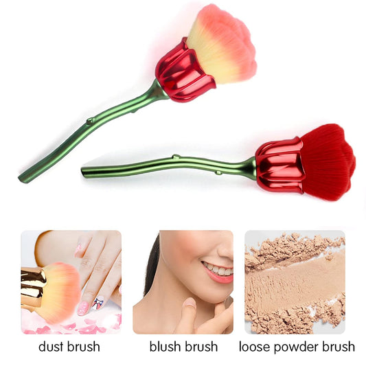 2 Pieces Rose Flower Makeup Brushes Flower Blush Brush Large Face Powder Makeup Brushes Kabuki Brushes for Powder Cosmetic Nail Dust Brush Loose Powder Brush Makeup Tools (Red/Yellow Pink)