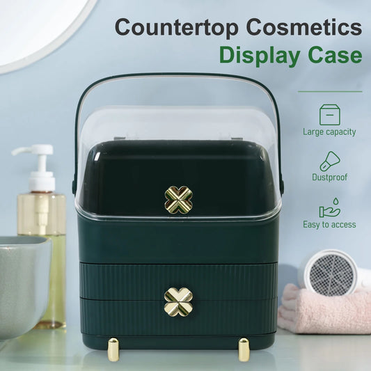 Makeup Organizer Cosmetics Storage with Fully Open Lid, Green, Countertop Cosmetics Display Case, Dresser, Ideal Gift for Women (Dark Green), 10.23*7.08*14.17In