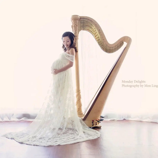 Maternity Photography Props Lace Wedding Dress Gown
