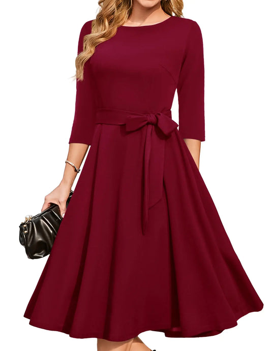 DRESSTELLS Christmas Cocktail Dresses for Women 3/4 Sleeve Formal Holiday Party Wedding Guest Dress Knee Length Winter Evening Club Dress DarkRed 2XL