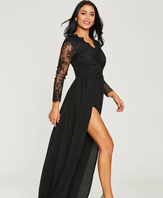 Sun Dresses for Women 2025 Casual Medieval 2024 2025 Dresses for Women Party Fashion Round Neck Mesh Dress Long Sleeve Lace Dress Split Ruched Hem Cocktail Dresses 3-Black Medium
