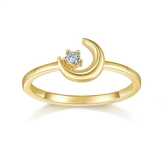 MINDDHA 14K Gold Plated Rings- Cubic Zirconia Simulated Diamond Band Ring- Crescent Moon Star Rings/Gold Rings for Women- 2mm Band Size 11