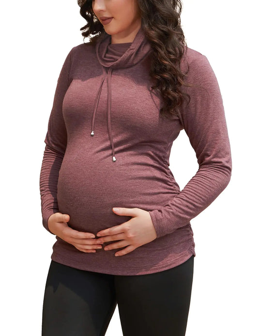 GINKANA Maternity Long Sleeves Shirts Cute Maternity Tops Casual Clothes Drawstring SweatshirtsBurgundyS
