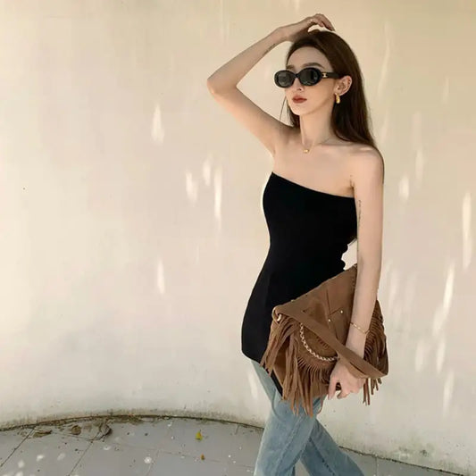 Straight Neck Backless Slim Hem Tank Top for Women