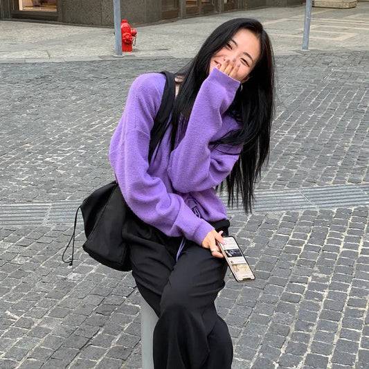 V-Neck Knitted Sweater for Women - Versatile Fall Top