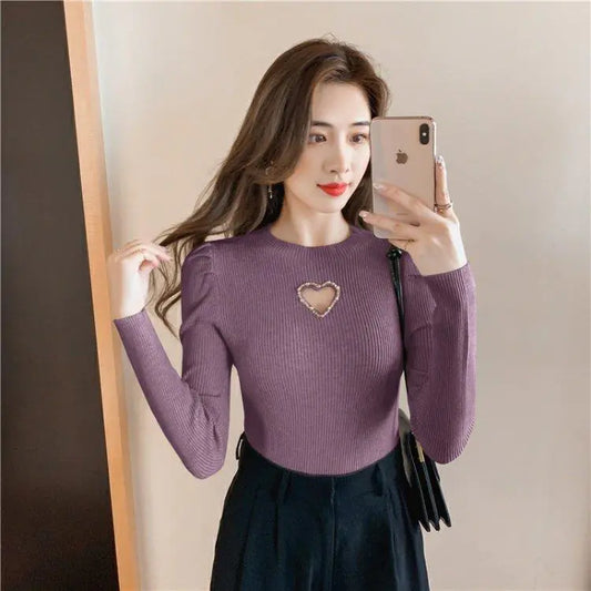 Hollow Heart Beaded Knitted Top for Women