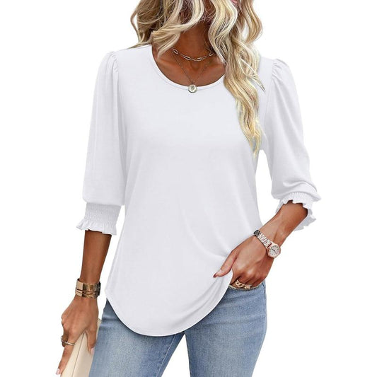 WIHOLL Blouses for Women Dressy Casual 3/4 Length Sleeve Womens Tops with Smocked Cuffs
