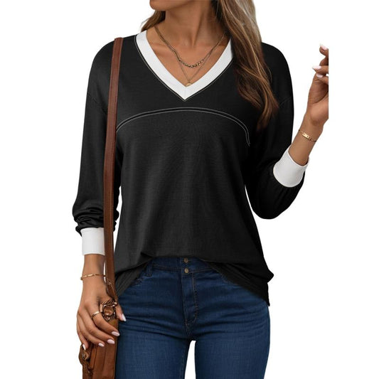 Dokotoo Women Blouses Dressy Casual Long Sleeve Shirts V Neck Color Block Tops Fall Outfits 2025