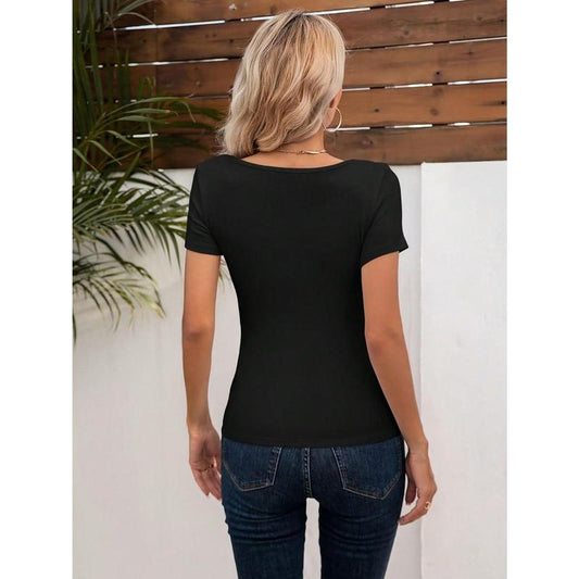 Womens Summer Short Sleeve T Shirts Knit Slim Fit One Piece Cutout Scoop Neck Going Out Date Night Tops