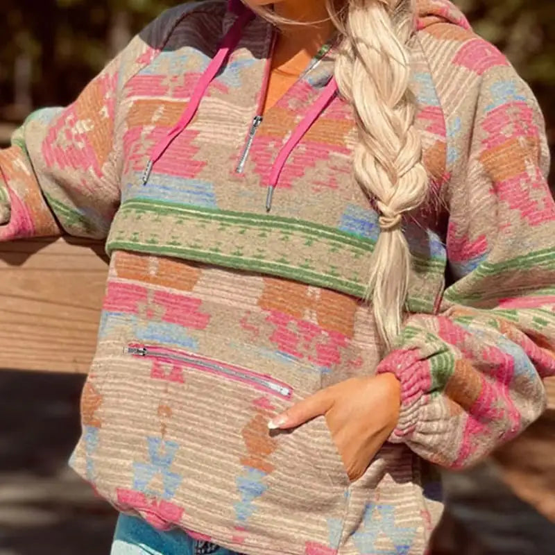 Introducing the ultimate blend of style and comfort with our Abstract Printed Hoodie designed specifically for women. This hoodie is not just a piece of clothing; it’s a statement of casual elegance that brings together the best of Japanese and Korean fashion trends.