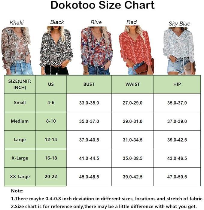 - Package Content: 1 x Womens Tops and Blouses. Please Refer to the Dokotoo Size Chart before Ordering. Anyother questions, please contact us freely.