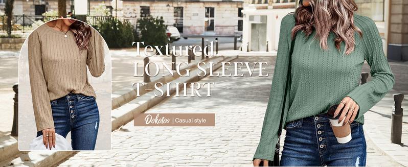 Dokotoo Womens Tops Long Sleeve Lightweight Shirts 2025 Fall Fashion Clothing Trendy Tops Crewneck Knit Basic Tee