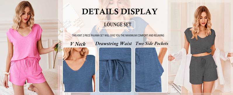 - Versatile:This two piece pajamas can be worn as a set, or as separates.With pullover v neck t shirt design,able to be dressed up with Jeans or Leggings. A must-have summer outfit sets in your wardrobe.Get comfy and fashionable in this short pjs set,and can be used as home wear,outfits/tracksuit set