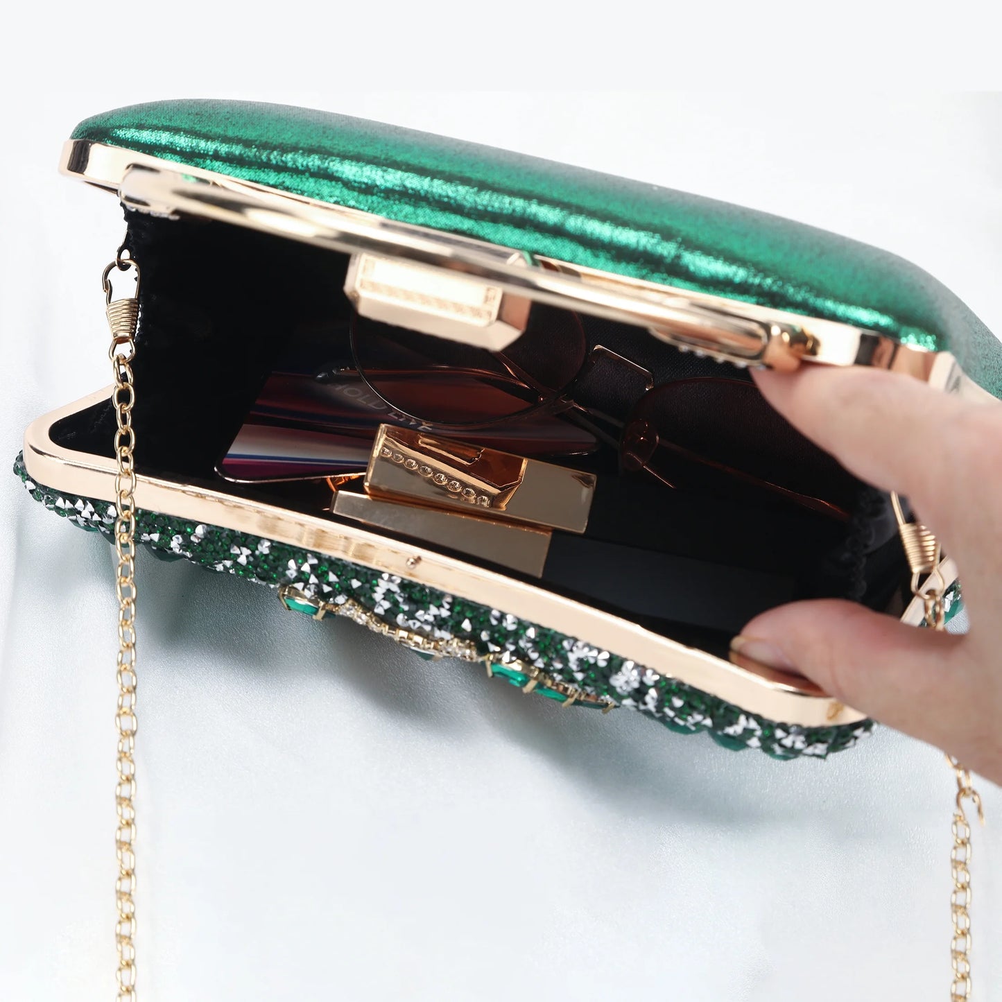 Evening Bag Clutch Purses for Women Ladies Sparkling Party Handbag Wedding Cocktail Prom Bag V-Neck Shape, Green