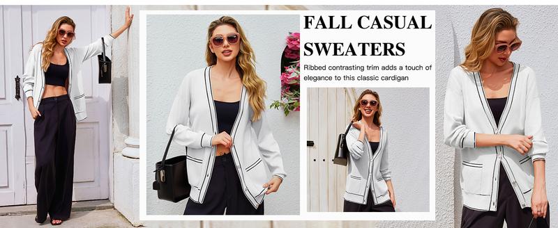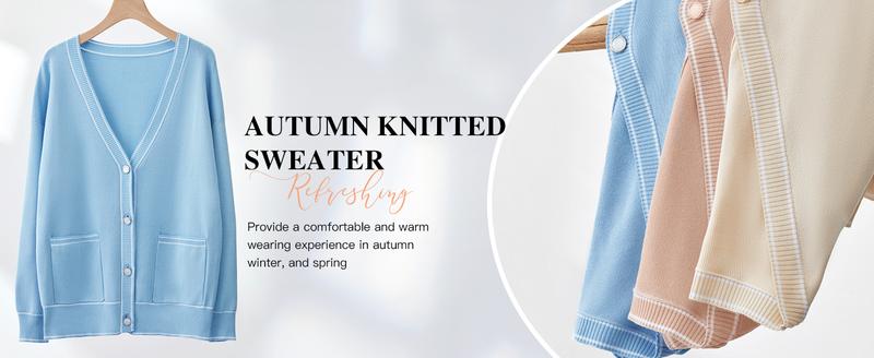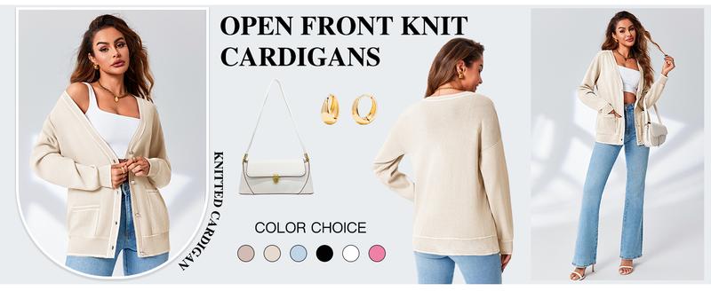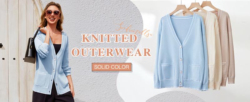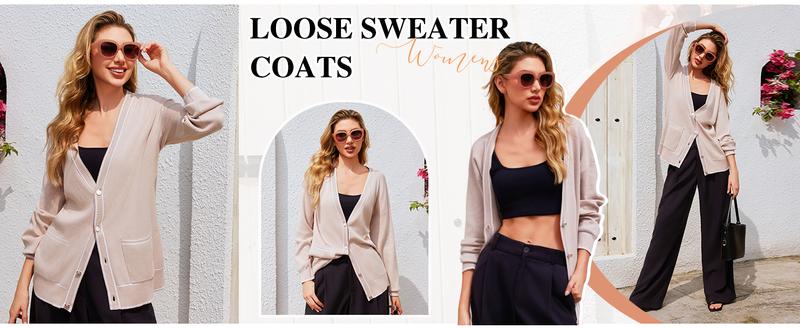 Fisace Womens Button down Cardigan Sweaters V Neck Open Front Oversized Knit Long Sleeve Fall Coat