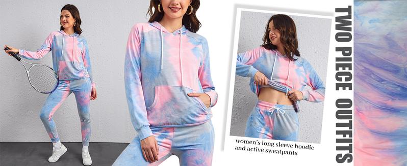 - Featuring a vibrant tie-dye pattern, this colorful sweat suit is a fashionable choice for women.