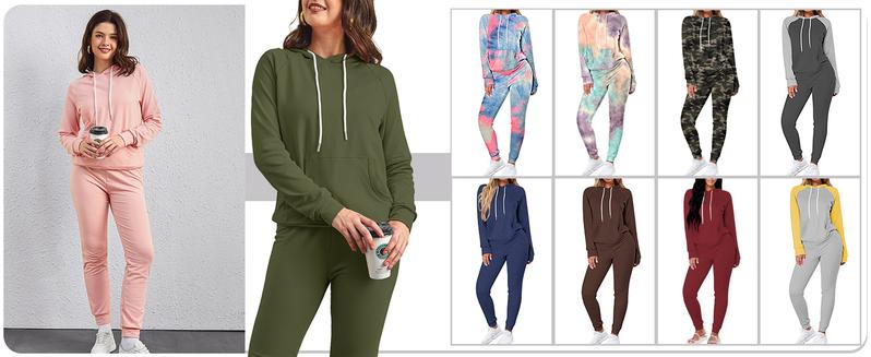 - This womens sweatsuit can be styled as a jogging set, matching set, sweat suit, track suit, coordinating set, or sportswear. Its hoodie design with soft seat pants creates an active yet comfortable look. Perfect for loungewear or a casual outfit.