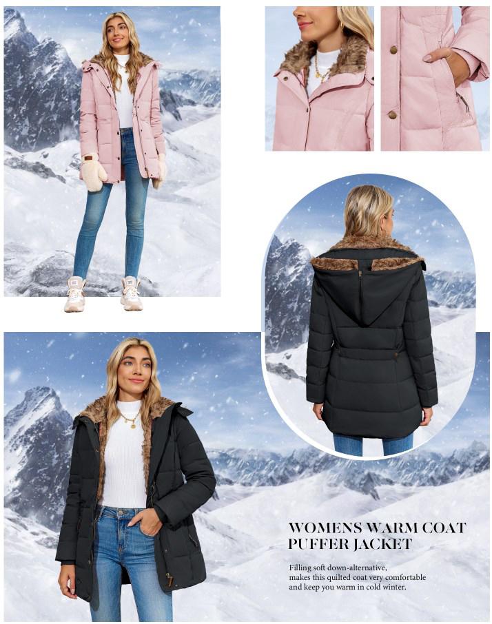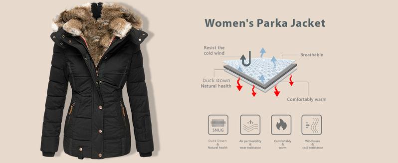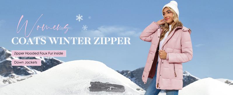 Goranbon Womens down Coats Winter Zipper Hooded Faux Fur inside Parka down Jackets