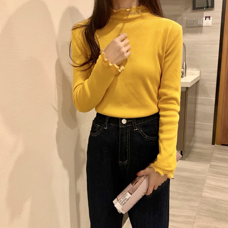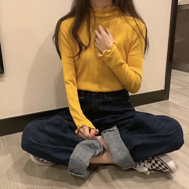 Embrace the cozy elegance of our new autumn-winter collection with this stylish half-high neck knitted top. Crafted from a blend of cotton, this top offers a soft and comfortable fit, perfect for layering during the chilly months. The delightful embroidery and ruffled edges add a charming touch, making it an ideal choice for a sweeter style wardrobe.