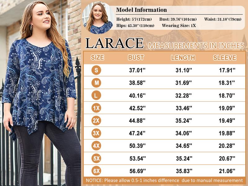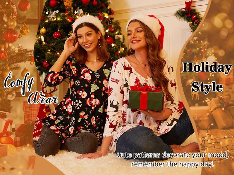 LARACE plus Size Tops for Women 3/4 Sleeve Christmas Crewneck Blouses Shirts Tunic Womenswear Asymmetrical Plussize Basic Top Dress Flowy Fabric Fit Christmas Clothes Blouse Women Tops Basic Minimalist Christmas T-Shirts Comfortable Tops Outfits Suits