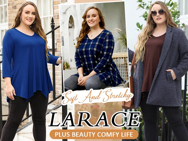 [Plaid Shirts for Women's Fabric] - LARACE womens swing tunic tops loose fit tees are made of 90% Polyester, 10% Spandex, extra soft plus size womens clothing for plus size women. 3/4 sleeve t shirts for women creates slimmer effect in visual. Also suits to as maternity shirts.