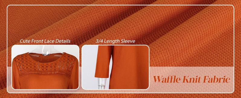 OFEEFAN Women Blouses Dressy Casual 3/4 Length Sleeve Lace Waffle Knit Tops