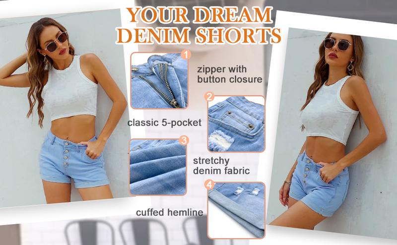 ONLYSHE Denim Shorts for Women Casual Summer High Waisted Shorts with Pockets