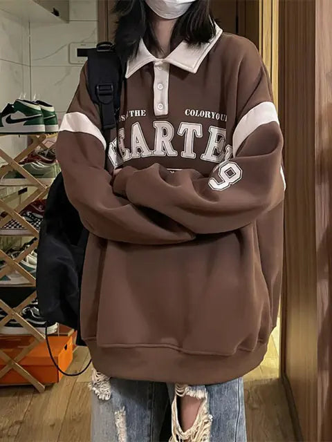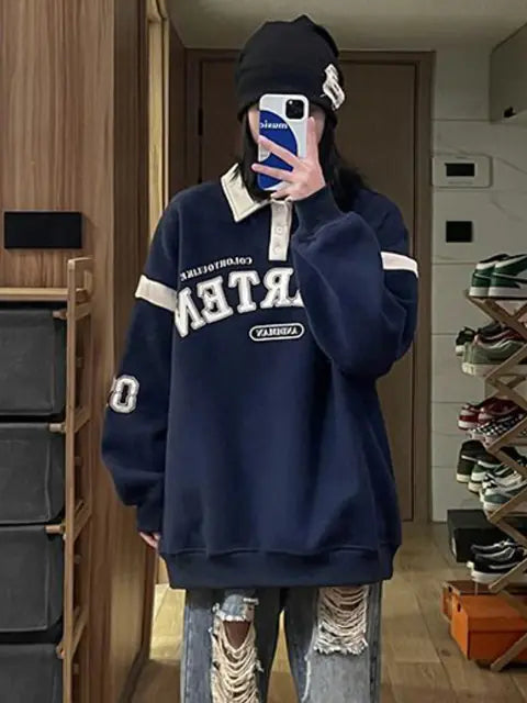 Plus Velvet Loose Hoodies for Women - Vintage Streetwear
