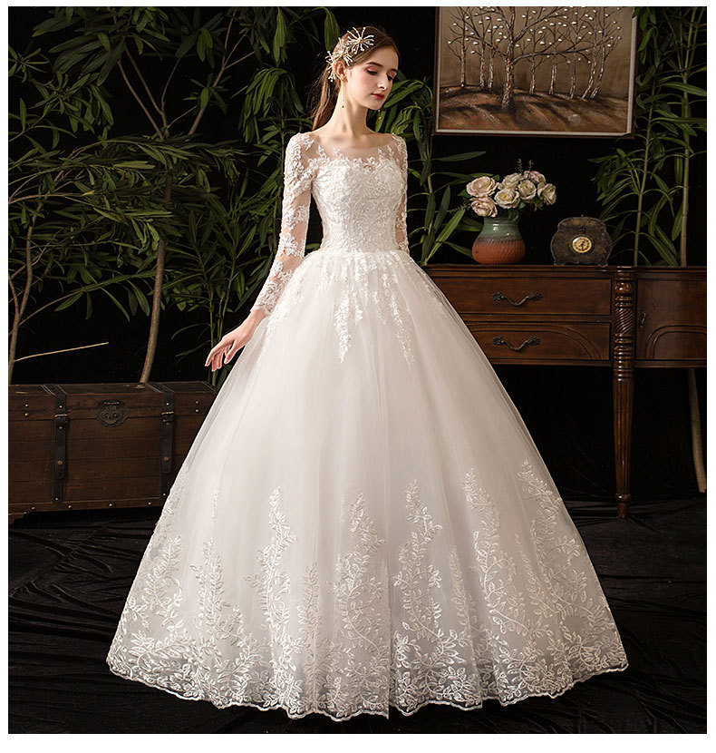 Step into your fairytale with our Women's Wedding Dress that embodies elegance and simplicity. Designed for the modern bride, this white dress features a neat and slim silhouette complemented by exquisite lace long sleeves, ensuring you make a stunning entrance at your wedding banquet or special occasion.