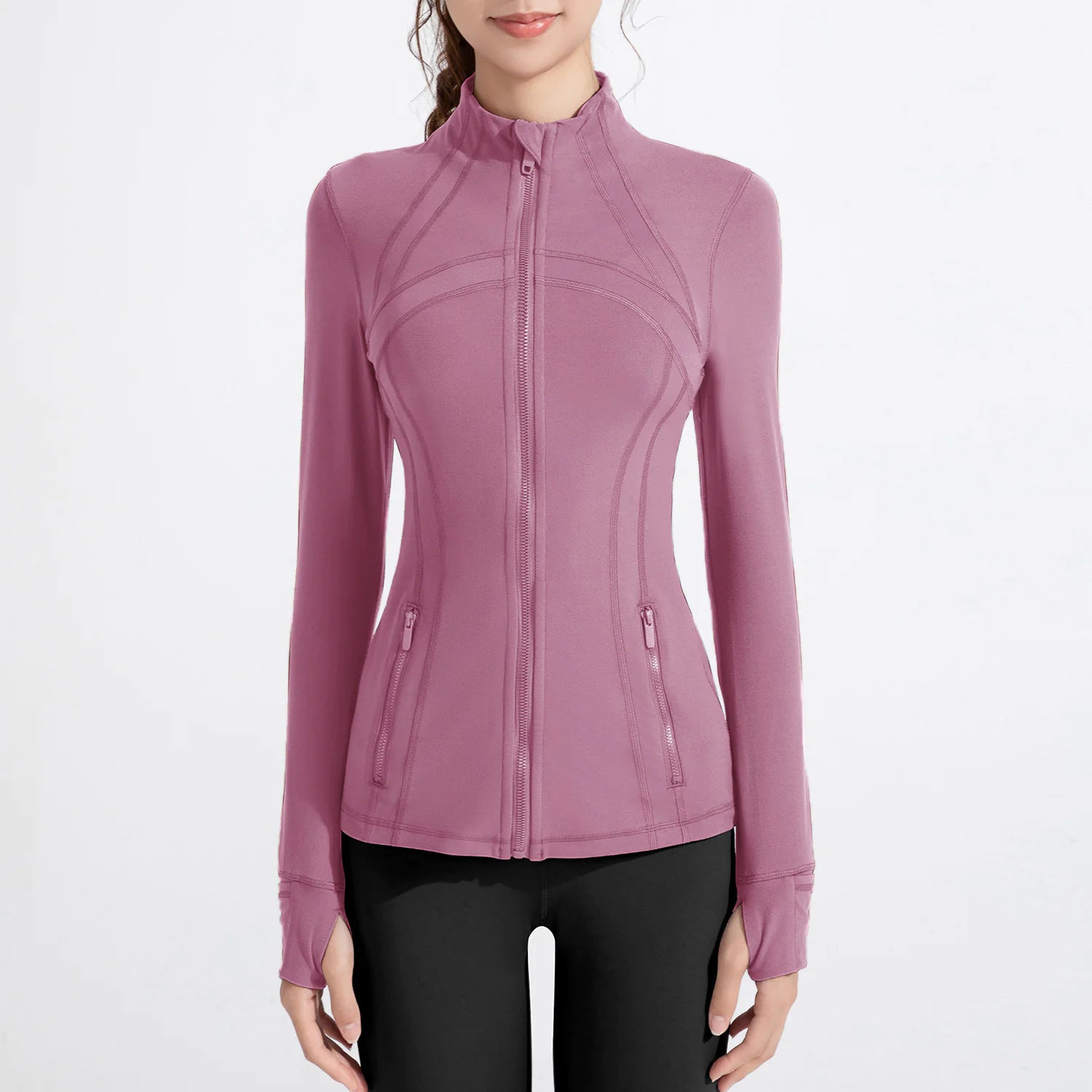 Stand Collar Sports Running Workout Long Sleeve Zipper Jacket for Women