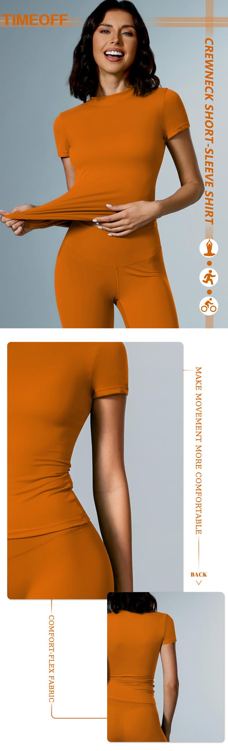 Timeoff 5 - Piece Solid Sports Tee Set , round Neck, Slim & Stretchy , Ideal for Yoga, Gym , Workouts – Women’S Athletic Wear