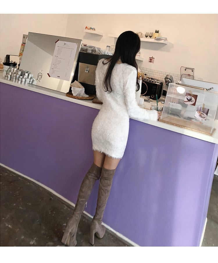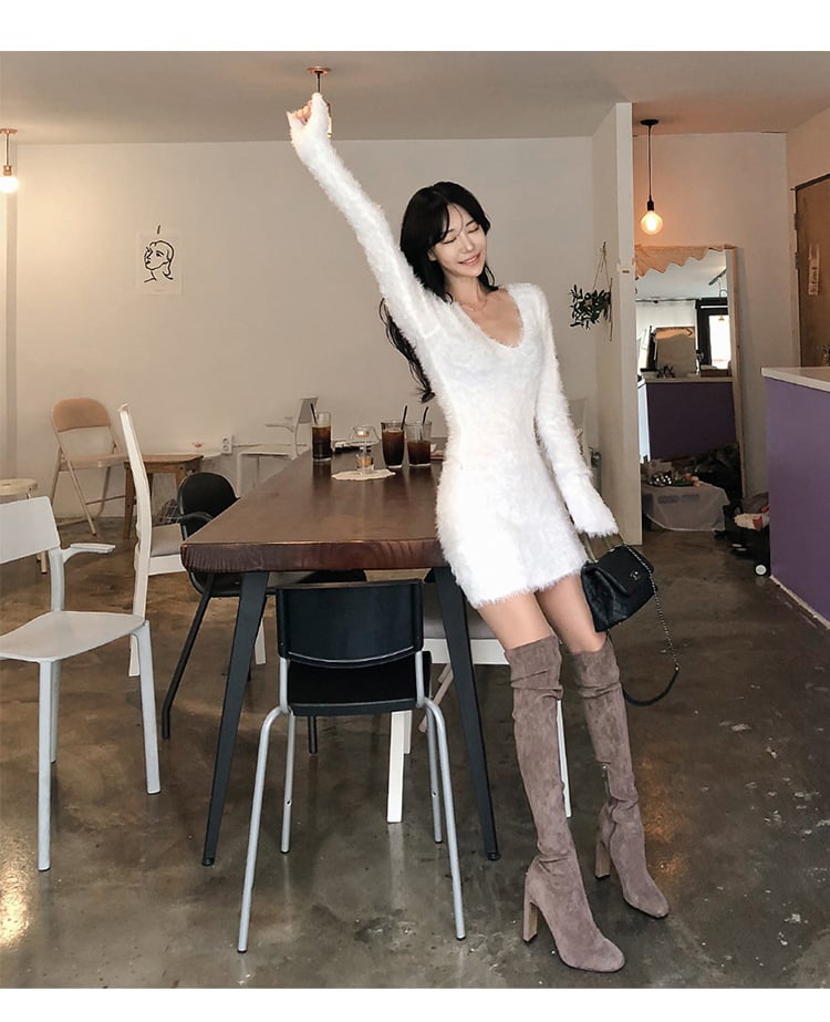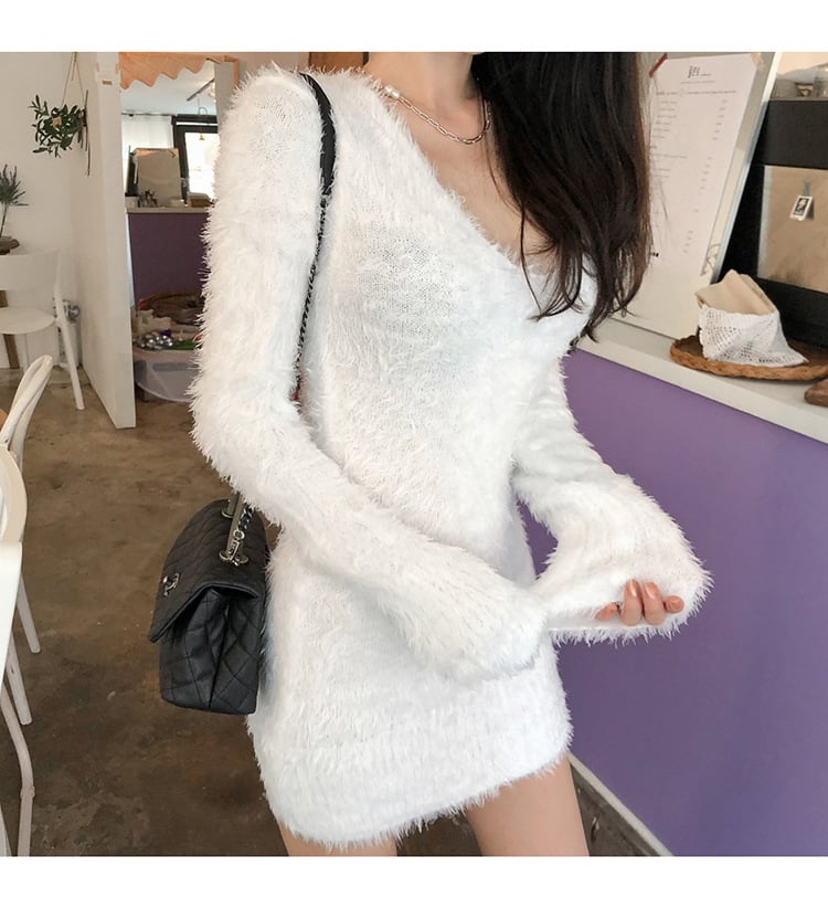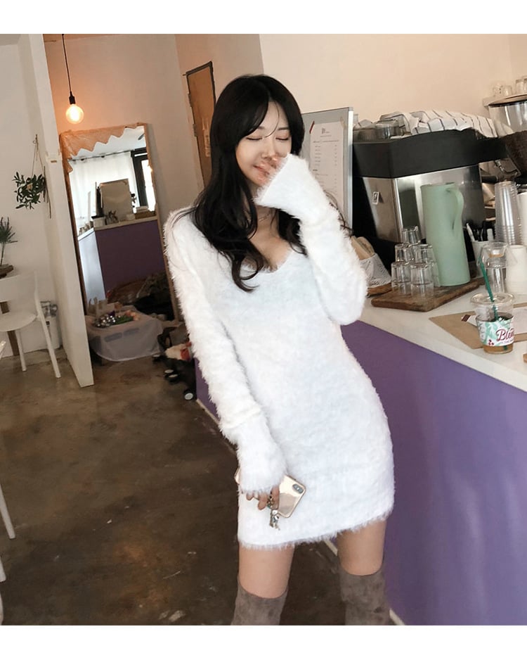 V-neck Thickened Elastic Sweater Dress for Fall/Winter