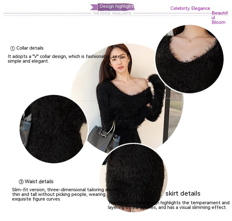 Embrace the cozy elegance of the season with our Autumn and Winter V-neck Thickening Keep Warm Elastic Sweater Base Dress. Designed for the modern woman, this versatile piece effortlessly combines style and comfort, making it the perfect addition to your wardrobe.
