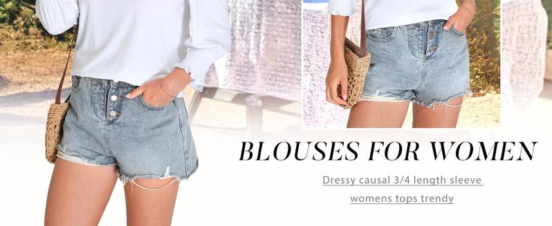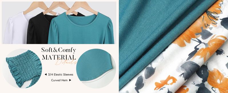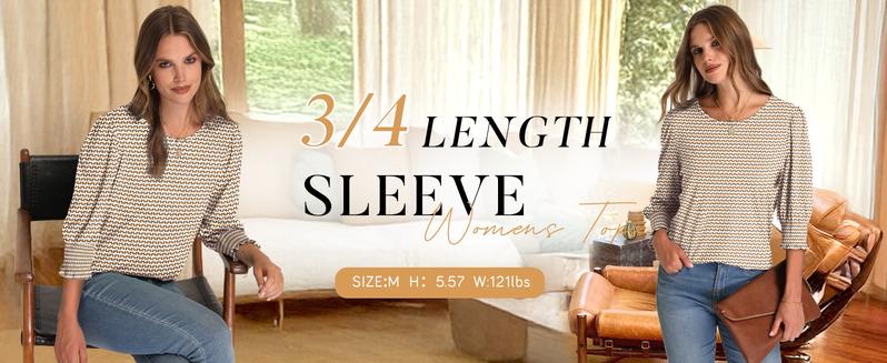 WIHOLL Blouses for Women Dressy Casual 3/4 Length Sleeve Womens Tops with Smocked Cuffs