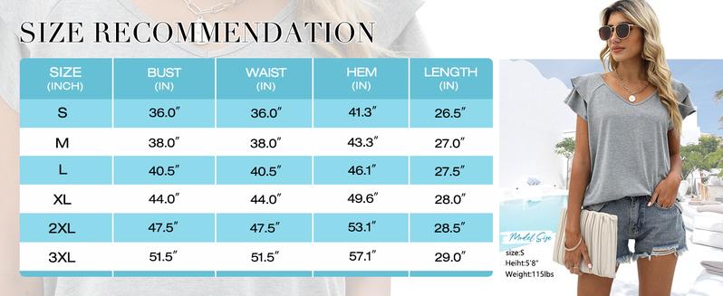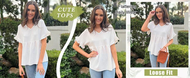 - Feature: V Neck T-Shirts, Ruffle Sleeve Tops, Short Sleeve Flowy Blouses, Trendy Spring Babydoll Tops, Solid Color Summer Peplum Tops. Easy to Wear and Suitable for Any Age.