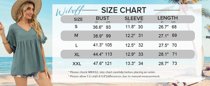 WIHOLL Womens Tops Casual V Neck Ruffle Sleeve T Shirts Babydoll Loose Fit Peplum Tops