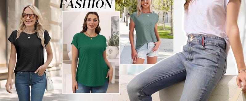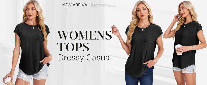 WIHOLL Womens Tops Short Sleeve Shirts Blouses for Women Dressy Casual Cap Sleeve Tops with Curved Hem