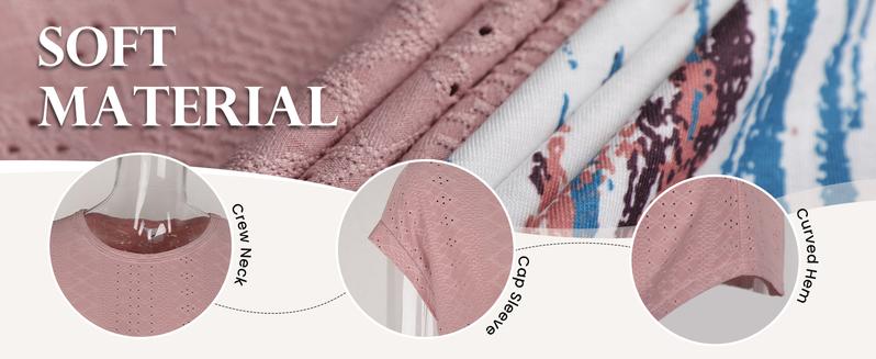 - Feature: Classic crew neck and cap sleeve design provides a flattering fit. Tunic tops with curved hem. Loose fit, basic, simple casual style chic and never out of date. Solid color & cute floral print for your choice.