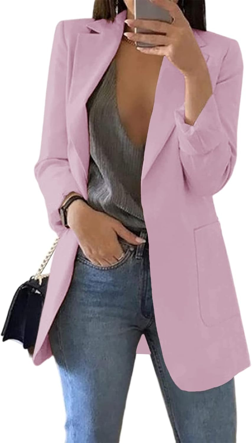 Womens Casual Blazers Open Front Long Sleeve Lapel Collar Work Office Jacket