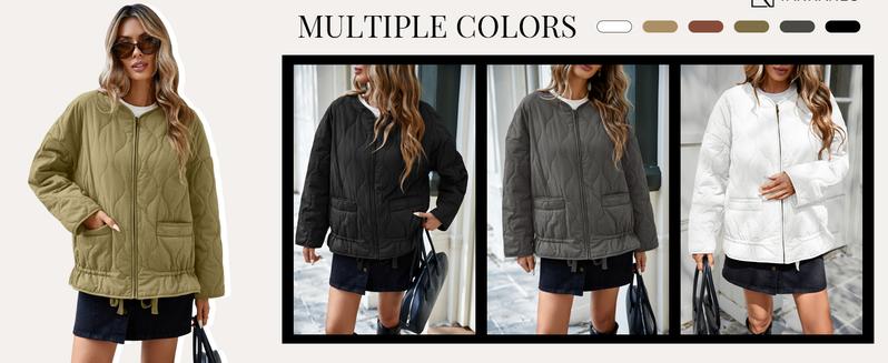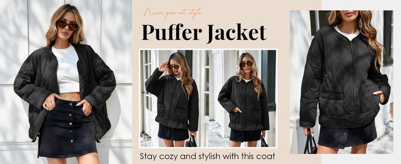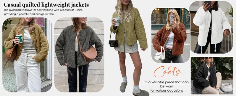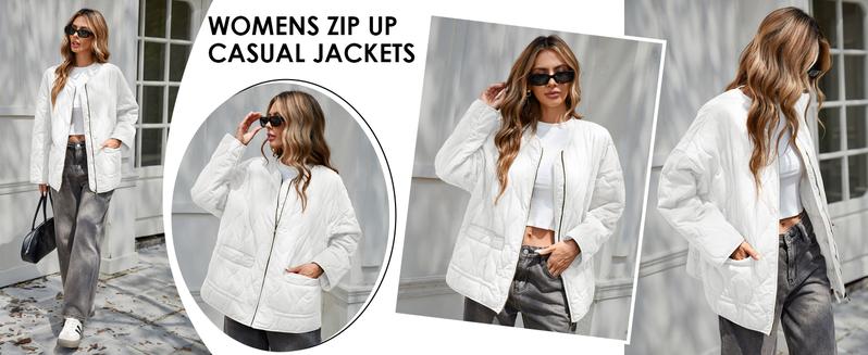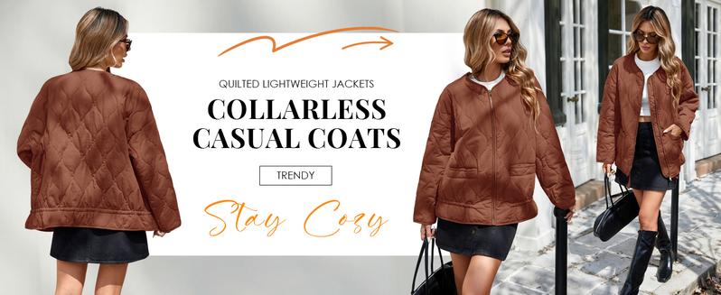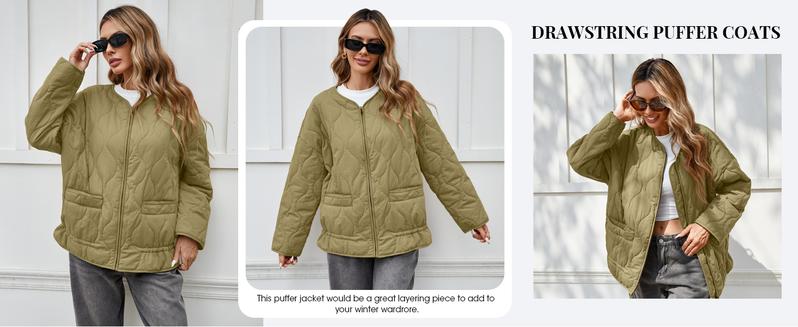 Womens Collarless Lightweight Quilted Jackets Casual Oversized Puffer Coats Zip up Drawstring Outerwe