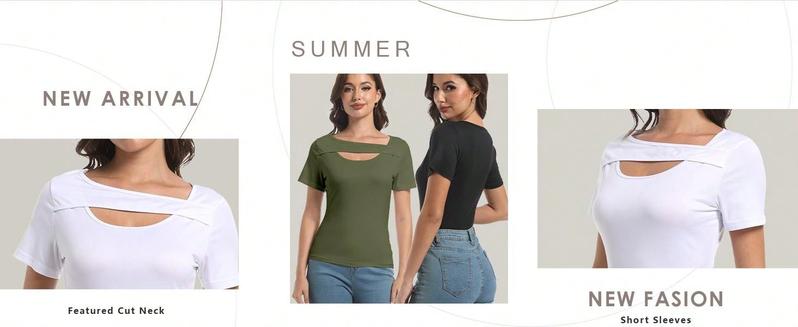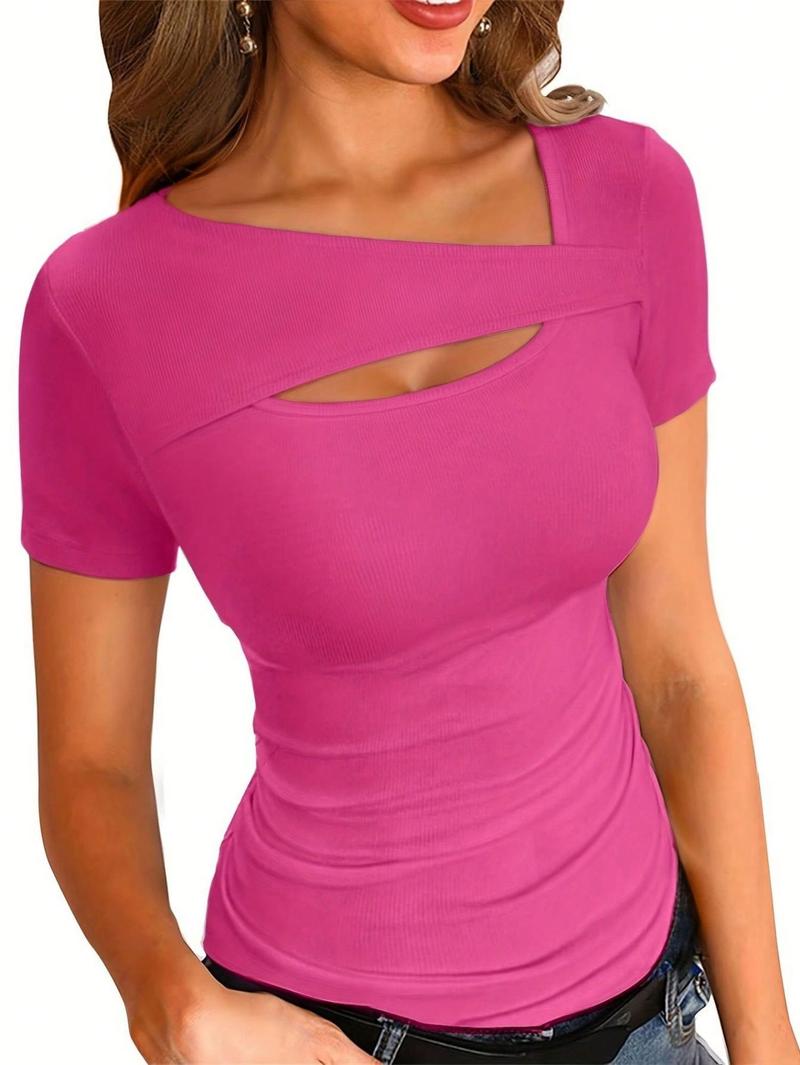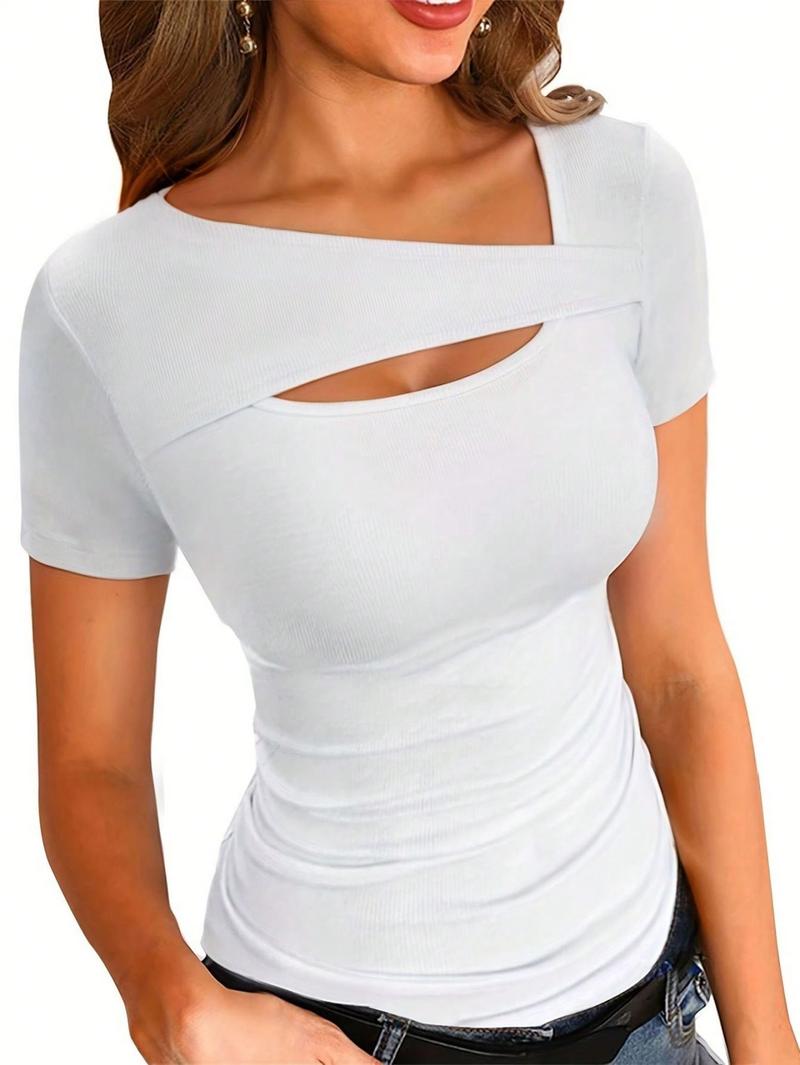 Womens Summer Short Sleeve T Shirts Knit Slim Fit One Piece Cutout Scoop Neck Going Out Date Night Tops