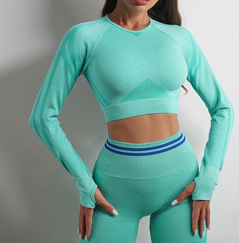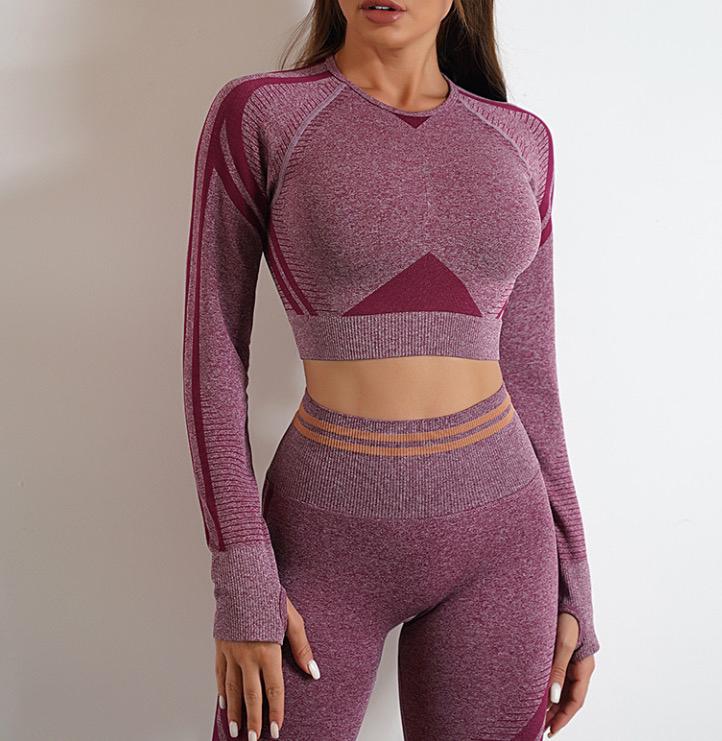 This workout clothing tracksuit sport outfit is the perfect addition to your active wardrobe. Made for both style and functionality, this gym wear outfit is designed to keep you comfortable and stylish during your workout routine. The tracksuit features a pair of leggings that offer a snug fit, ensuring flexibility and ease of movement. The long sleeve top provides ample support for the upper body, making it an ideal choice for any intense physical activity. With its sleek design, this workout clothing tracksuit has a versatile look that complements any style or preference. Whether you're hitting the gym or going out on an early morning jog around town, this sport outfit will keep you looking fashionable without sacrificing comfort. Invest in quality gym clothing wear made to endure rigorous exercise routines with ease. Order yours today!
